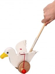 Ovaj kvalitetan drveni ptić na štapu pri guranju se elegantno kreće i svojim mašućim krilima privlači pozornost – hodanje je tako za male istraživače zabavnije i prirodnije. Zahvaljujući čvrstoj konstrukciji i glatkoj obradi, igračka je ugodna za držanje i lako upravljiva.