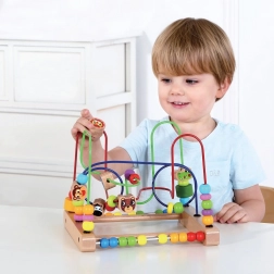 Drveni labirint sa životinjama idealna je igračka za male istraživače od 18 mjeseci. Zahvaljujući raznobojnim perlicama i simpatičnim životinjskim prijateljima, djeca na zabavan način vježbaju koordinaciju oko–ruka te uče prepoznavati boje i oblike. Igra s perlicama ujedno potiče prve korake u računanju i prirodno razvija logičko razmišljanje.