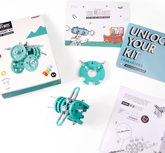 Set The OffBits PiperBit donosi svijetu malih konstruktora elegantan jednomotorni „aviončić” inspiriran transportnom tehnikom. Zahvaljujući pametnoj kombinaciji metalnih spojeva i plastičnih dijelova lako ćete sastaviti osnovni model, a potom je mašti nebo granica – isprobavajte vlastite ideje, kombinirajte s kartonom ili vijcima iz kućanstva i stvarajte originalne izume.