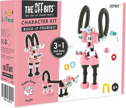 JoyBit iz kolekcije THE OFFBITS je razigrani konstruktor koji pretvara obične vijke i matice u osebujne robotske figurice. Iz jednog seta složit ćete najmanje 3 modela (npr. JoyBit, AstroBit ili ljubimca), a zahvaljujući kombinaciji plastičnih i metalnih dijelova te priloženom alatu SuperTool nastat će i vaši vlastiti originalni izumi.