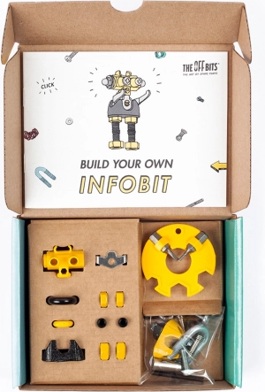 Konstrukcijski set The OffBits Infobit pretvara vijke i metalno‑plastične dijelove u zabavnog robota, pilića ili štene – zahvaljujući pametnom sustavu spojeva i priloženom alatu. U pakiranju je sve potrebno kako biste odmah mogli početi stvarati i razvijati maštu.