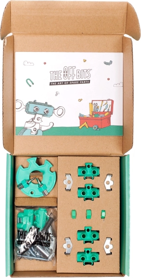 Otkrijte kreativni konstruktorski set THE OFF BITS CrocBit, koji od obojenih matica, vijaka i oblikovanih dijelova možete složiti u tri različita modela – krokodila, guštera i škorpiona. Ovaj pametni set 3 u 1 razvija kreativnost, finu motoriku, logičko razmišljanje i podupire osnove STEAM obrazovanja. U kompletu je alat i dijelovi kompatibilni s uobičajenim predmetima za beskrajne mogućnosti slaganja.