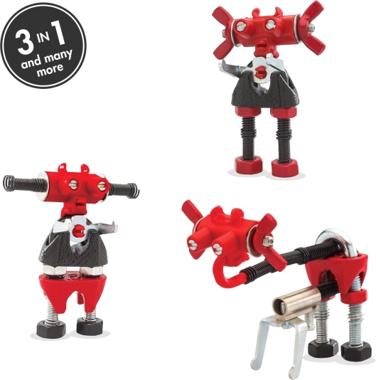 Dijelove je moguće kreativno kombinirati s kartonom, vijcima i drugim predmetima svakodnevne uporabe, pa su mogućnosti gradnje praktički neograničene. Uz priloženi multifunkcionalni alat montaža je jednostavna i sigurna – idealno za početnike konstruktore.