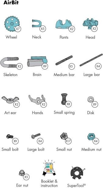 Otkrijte svijet konstruktivne zabave s The OffBits AvionBit – sastavite mlazni avion za svojeg robota, trkaći bicikl ili teretna kolica i stvarajte vlastite originalne izume. Set sadrži alat za jednostavno zavrtanje vijaka i pametne spojnice koje potiču preciznost i vještinu.