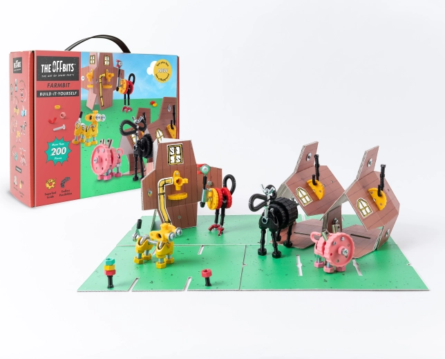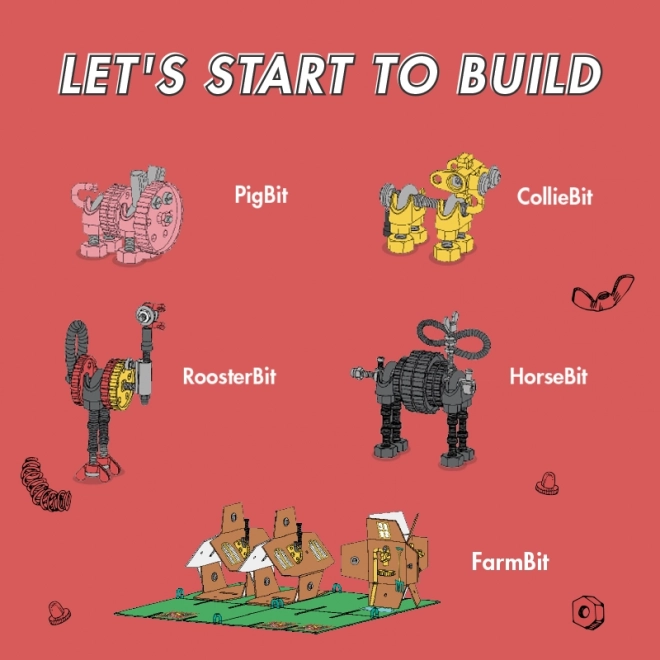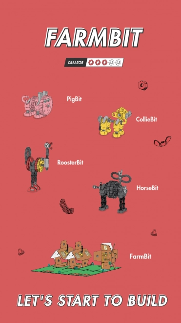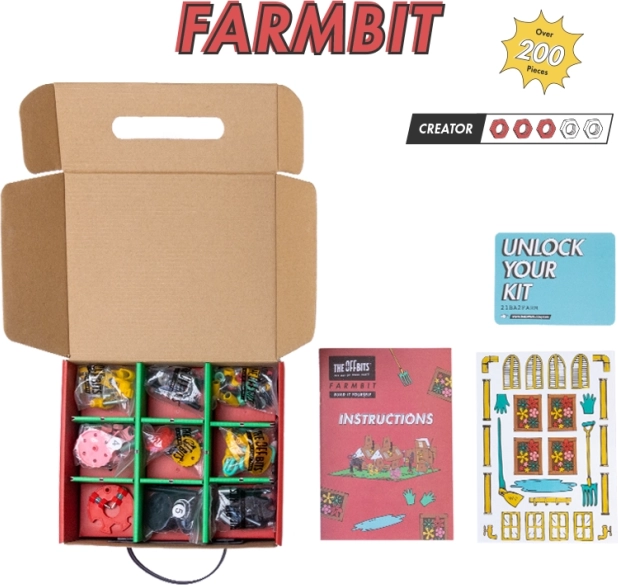FarmBit je građevni set koji donosi beskrajne mogućnosti da posluži kao poljoprivredna farma ili štala. Set sadrži više od 200 šarenih matica i vijaka, što omogućuje stvaranje jedinstvenih modela kao što su Farm animals PigBit, CollieBit, RoosterBit i HorseBit. Vaša mašta je granica za stvaranje daljnjih jedinstvenih kreacija.
