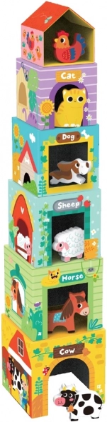 Kocke sa životinjama Farma od 2Kids Toys dizajnirane su za učenje i zabavu djece. Šest kocaka ne tvore samo toranj za slaganje, već i malene kućice za životinje. Svaka životinja ima svoje mjesto i uči djecu kako pravilno graditi i prepoznavati brojeve. Boje i oblici razvijaju sposobnosti prepoznavanja i motoriku.