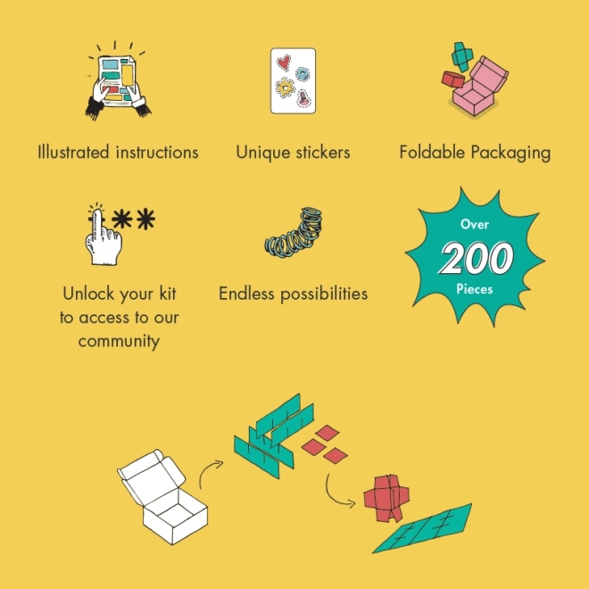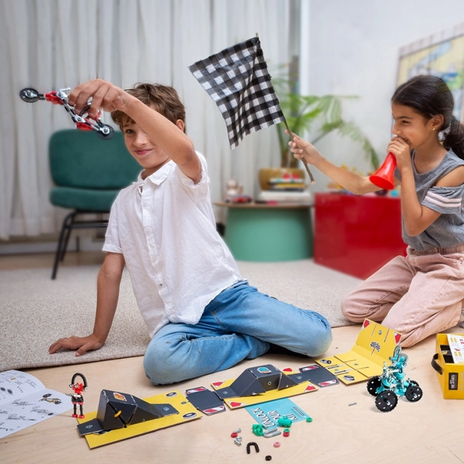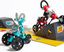 Uz set OffBits RaceBit, vaša će se djeca upustiti u stvaralački svijet mašte, gdje mogu izraditi do četiri modela i otkriti beskonačan potencijal za vlastite kreativne ideje. Set sadrži više od 200 dijelova, uključujući šarene matice, vijke i oblikovane elemente koji će obogatiti iskustvo igre. Set ne samo da potiče razvoj fine motorike i logičkog razmišljanja, već i kreativnosti kroz igru.