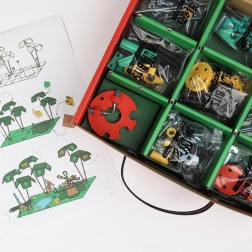 Uronite u svijet kreativnosti s konstrukcijskim setom JungleBit od OffBits. Ovaj set omogućuje izradu četiri osnovna modela: BeeBit, MonkeyBit i DragonflyBit, no tu zabava ne staje! Uz pomoć ovog seta možete sastaviti brojne druge jedinstvene kreacije i eksperimentirati s različitim materijalima iz kućanstva. Set potiče razvoj vještina u području znanosti, tehnologije, inženjerstva, umjetnosti i matematike, a istovremeno pomaže unaprijediti finu motoriku i logičko razmišljanje kod djece.