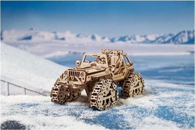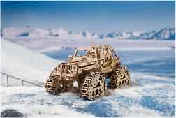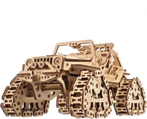Uronite u svijet fine mehanike i otkrijte UGEARS gusjeničara koji sjajno spaja inženjersku razigranost i zanatsku ljepotu prirodnog drva. Pogon osigurava motor na gumicu s čegrtaljkastim mehanizmom, s prebacivanjem između D (Drive), S (Sport) i P (Parking), a stabilnu vožnju osigurava stražnje njihalo. Otvoriva hauba otkriva „motor“, otvorena kabina naglašava realistično izvođenje, a gusjenice u stilu Mattracks/Rubtrack pretvaraju model u pravi off-road.