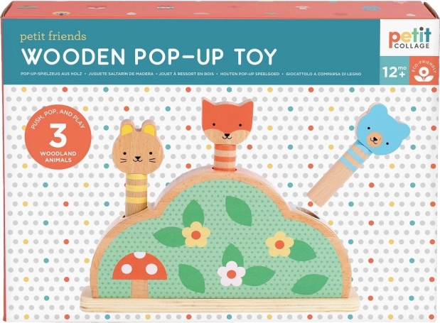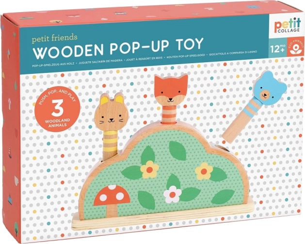 Otkrijte razigranu i sigurnu zabavu za najmlađe s drvenom iskačućom igračkom PETIT COLLAGE. Tri šumske životinjice na oprugama čekaju da ih djeca pritisnu i puste da iskoče – sjajna aktivnost za razvoj fine motorike, koordinacije oko–ruka i razumijevanja uzroka i posljedice. Izrađeno od FSC® certificiranog drva, tiskano netoksičnim bojama na bazi vode i zapakirano u ekološko pakiranje.