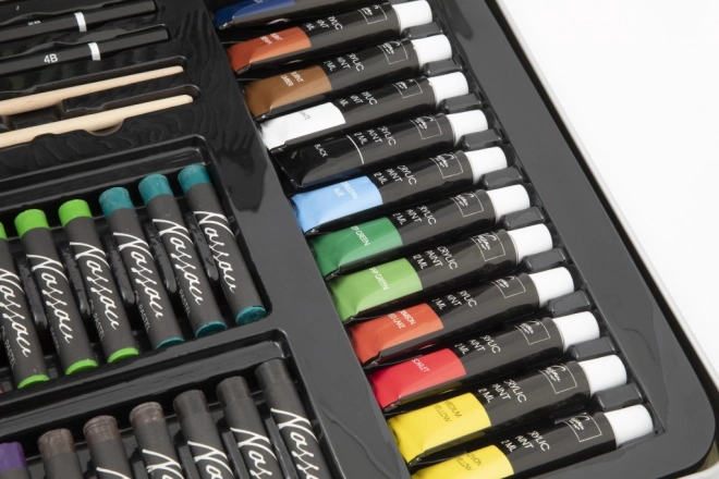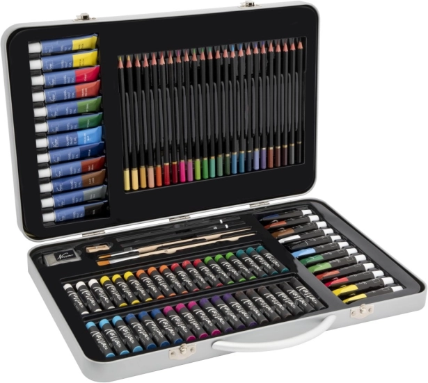 Izvrstan izbor za umjetnike, ovaj set likovnih potrepština smješten je u elegantnom metalnom koferu koji sadrži sve što vam treba za kreativnost u pokretu.