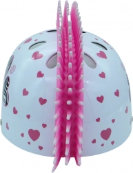 Neodoljiva i sigurna kaciga Zebra sa srdašcima dizajnirana je za optimalnu zaštitu tijekom vožnje bicikla, skateboarda ili rola.