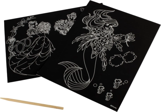 Stvarajte živopisne slike omiljenih likova iz svijeta Disneyja. Svaki list ima crnu površinu s bijelim konturama koje nakon grebanja otkrivaju raznolike boje. Set je savršen kao poklon i kao mirna kreativna aktivnost kod kuće ili na putu.