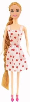 Ova lutka je savršen dodatak svakoj djevojačkoj kolekciji. S dugom kosom, pruža djeci kreativne mogućnosti za češljanje i oblikovanje frizura. Lutka je na zglobovima i mjeri približno 30 cm, što ju čini idealnom igračkom i za manje ruke djece.