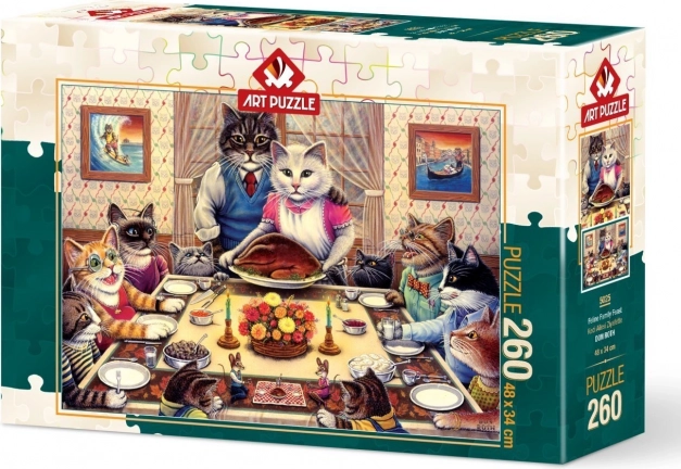 Otkrijte kvalitetne obiteljske puzzle s motivom mačje obitelji koje donose sate opuštanja i zabave. Zahvaljujući preciznim izrezima i čvrstom materijalu dijelovi savršeno pristaju, što olakšava slaganje i mlađim entuzijastima. Nakon slaganja nastaje dojmljiva slika dimenzija 48 × 34 cm, idealna za uokvirivanje ili izlaganje.