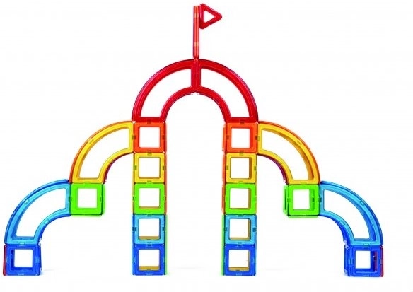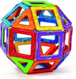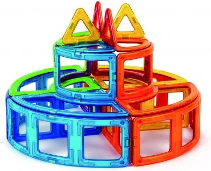 Magformers Creative prava je poslastica za nesputanu maštu djece i odraslih. Količina te raznolikost boja i oblika dijelova pružaju prostor za sastavljanje i najodvažnijih konstrukcija. Zahvaljujući većem udjelu obje vrste trokuta, ovaj je set pogodan i za modeliranje finijih detalja. Za inspiraciju će vam poslužiti odlično izrađen priloženi booklet. Set sadrži 20 kvadrata, 12 trokuta, 2 peterokuta, 4 romba, 8 dugih trokuta, 4 dvostruka pravokutnika, 8 isječaka, 4 trapeza, 8 dugih lukova, 4 luka, 4 trostruka pravokutnika i drugo. Pogodno za djecu od 3 godine. Broj dijelova: 90. Kreativna magnetska građevna igračka Magformers omogućuje sastavljanje velikog broja trodimenzionalnih objekata pomoću dvodimenzionalnih plastičnih mnogo-kuta. Magformers vježba finu motoriku, potiče kreativnost, uči djecu bojama i osnovnim geometrijskim oblicima. Dimenzije dijelova i pažljivo odabrani oblici osiguravaju maksimalnu moguću sigurnost igračke. Materijal od kojeg je set izrađen zadovoljava najstrože higijenske i zdravstvene kriterije. Dijelovi su dovoljno veliki, ne mogu se progutati i praktički su neuništivi. MAGFORMERS se vrlo dobro može kombinirati i s poznatom magnetskom građevnom igračkom Geomag.