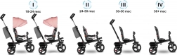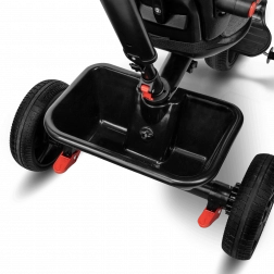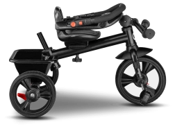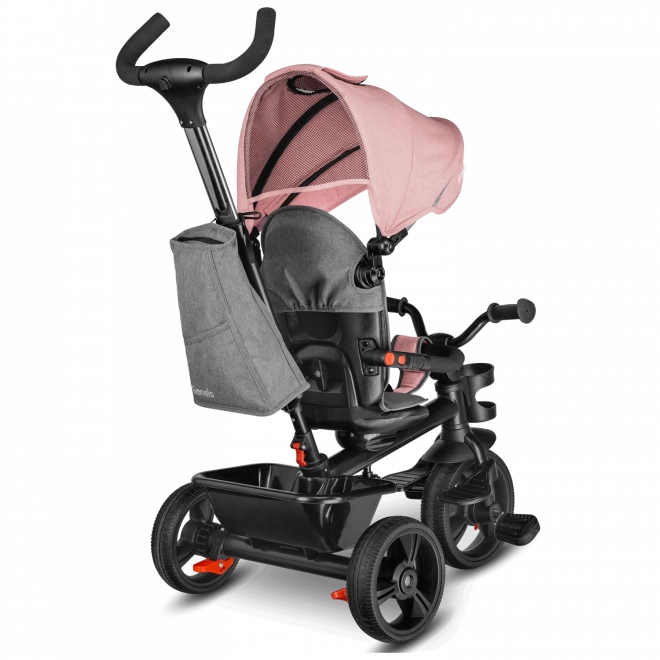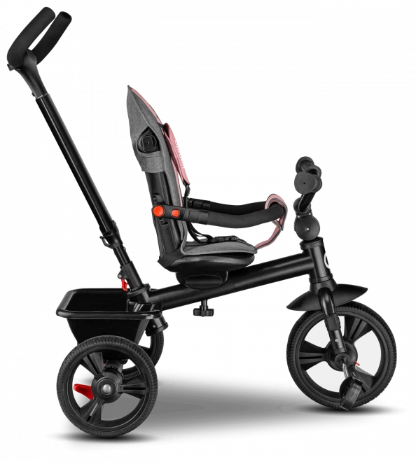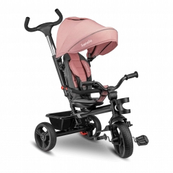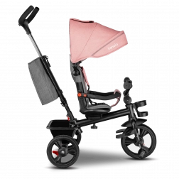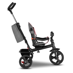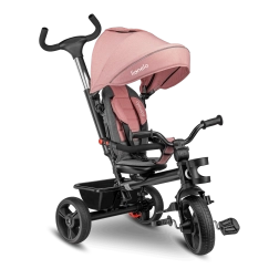 Za maksimalnu udobnost tu su podesivi krović s prozirnim prozorčićem, podesiva ručka za roditelje i praktična oprema – košarica, torba i držač za bocu. Sigurnost povećavaju trodijelni pojasevi, prednja prečka, reflektirajući elementi i dva neovisna stražnja kočiona mehanizma. Trokolica se lako sklapa u kompaktne dimenzije, a nakon sklapanja može se praktično nositi zahvaljujući integriranoj ručki.