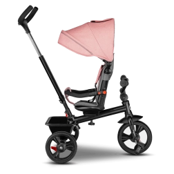 Sjedalo se može okrenuti za vožnju u smjeru ili suprotno od smjera. Roditelji će cijeniti podesivu ručku, krović s prozirnim prozorčićem i oslonac za noge za manju djecu.