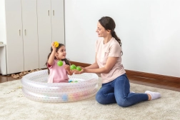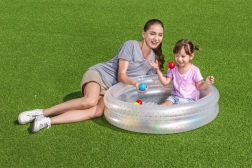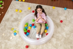 Univerzalan bazenčić/ball pit dimenzija 91 × 20 cm prikladan je za dnevni boravak na tepihu i za vrt. Dva jednaka napuhujuća prstena stvaraju stabilne i meke bočnice koje povećavaju udobnost i sigurnost tijekom igre. Prethodno testirani, izdržljivi vinil i sigurnosni ventili pomažu zadržati zrak unutra i produljuju vijek trajanja proizvoda.