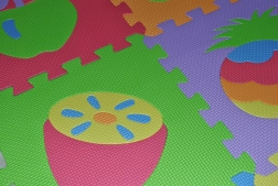 Pjenaste puzzle s motivom raznog voća s izvadivim dijelovima za djecu od 3 godine. - sigurna i mekana podloga je periva - pjenaste puzzle prigušuju buku i izoliraju od hladnoće - idealne kao podloga za igru, ne samo za dječje sobe - puzzle imaju rebrastu površinu - debljina pjenastih puzzli je 0,7 cm - pakiranje sadrži 9 kvadratnih dijelova - veličina jednog dijela je 28 x 28 cm (mjereno od zupca do izreza)