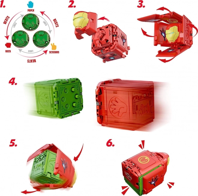 Svaka kockica skriva vaš izbor Kamen–škare–papir ispod legendarne maske superjunaka. Stilska izvedba oduševit će MARVEL fanove i kolekcionare.