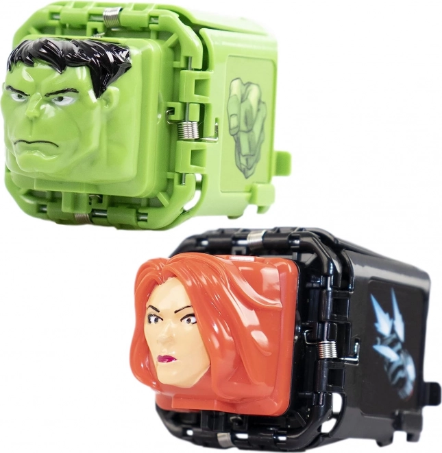 Otkrijte napetu igru s motivima MARVEL Avengers koja spaja jednostavna pravila, kolekcionarske elemente i brzu akciju. Svaka kockica skriva izbor kamen, škare ili papir ispod maske omiljenog junaka. Postavite potez, prekrijte ga maskom, bacite kockice jednu protiv druge i otkrijte pobjednika – kamen pobjeđuje škare, škare pobjeđuju papir, a papir pobjeđuje kamen.