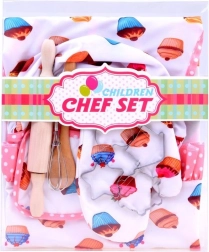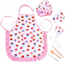 Slatki dječji slastičarski set pretvara svakog malog pomagača u kuhinji u pravog šefa kuhinje. Sadrži pregaču, kuharsku kapu, rukavicu i praktičan pribor za pečenje uključujući valjak, drvenu žlicu, pjenjaču i metalne modlice. Odlično za zajedničko pečenje, sigurnu igru i razvoj kreativnosti.