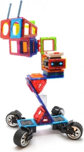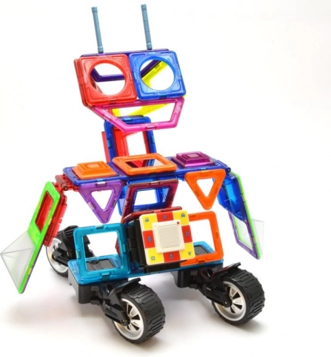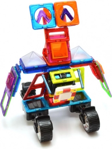 Otkrijte kreativni magnetni konstruktorski set MAGFORMERS s 40 dijelova i izgradite pokretne robote, buggy vozila, teretna vozila i svemirska vozila. Zahvaljujući magnetnim dijelovima, okretnim podvoznim modulima i bonus modulima (audio modul i battery pack) uživat ćete u mnoštvu svjetlosnih i zvučnih efekata. Široki kotači, podesive ruke s šarkama i kompatibilnost s GEOMAG-om proširuju mogućnosti gradnje i razvijaju kreativnost i finu motoriku.