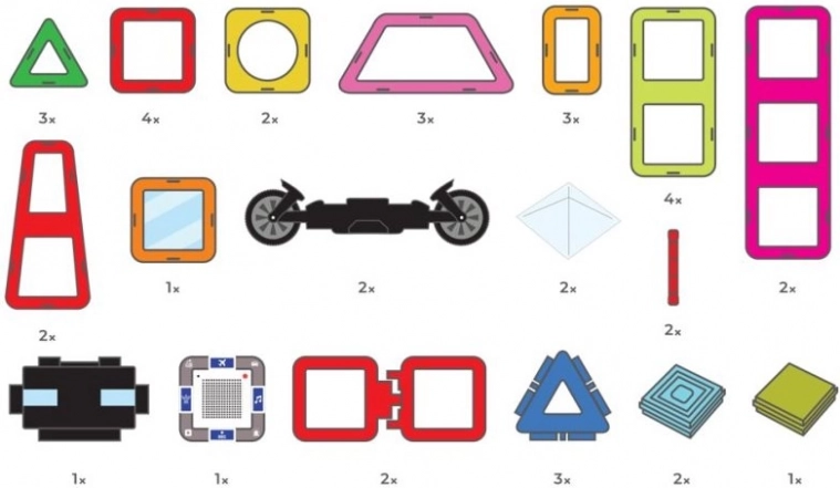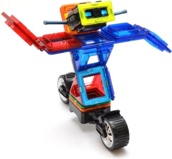 Kutija je idealna za gradnju pokretnih robota sa slobodno podesivim rukama, ali i motocikala, kamiona i prikolica. Tri trostrana nastavka i bogat set pravokutnika pomažu stvarati čvrste okvire po visini i dužini. Djeca će isprobati rad s magnetnim spojnicama, razviti maštu, prostorno shvaćanje i finu motoriku. Dijelovi su sigurni, izdržljivi i kompatibilni s GEOMAG-om.