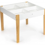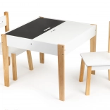 Nakon završetka igre, sve igračke mogu biti lako organizirane ispod odvojive ploče stola. Set uključuje dvije udobne stolice s borovim nogama.