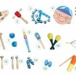 Ovaj bogati set glazbenih instrumenata odličan je izbor za prve glazbene korake. Od tamburina preko marakasa do frule – djeca će uvježbavati koordinaciju, jačati slušnu percepciju i uživati u mnogo zabave. Drvena izrada osigurava čvrstoću i dug vijek trajanja, dok raznoliki zvukovi potiču razvoj ritma i stvaralaštvo.