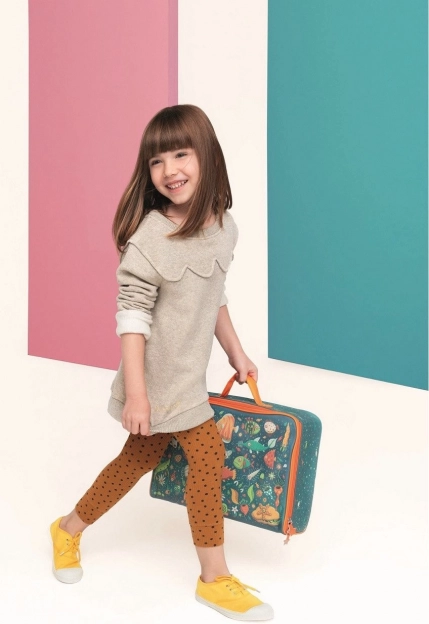 Kovčežić od čvrstog platna s ručkom u nježnim bojama lijepo je ilustriran podmorskim motivom. Kovčežić je vodootporan, iznutra ima dvije pregrade i 2 džepa. Laganh je i zahvaljujući ručki lako se prenosi. Zatvara se kvalitetnim dvosmjernim patentnim zatvaračem. Kovčežić se može čistiti samo brisanjem površine. Dimenzije: 39 x 28 x 11 cm Materijal: 80% pamuk, 20% poliester