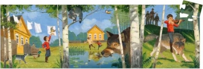 Otkrijte poetični svijet bajke Petar i vuk s panoramskim puzzlama DJECO. Zahvaljujući 50 čvrstih dijelova djeca vježbaju finu motoriku, logičko razmišljanje i strpljenje, dok uživaju u zabavnom slaganju prekrasne ilustracije. Gotove puzzle mjere približno 62 × 20 cm i odlično su za izlaganje.