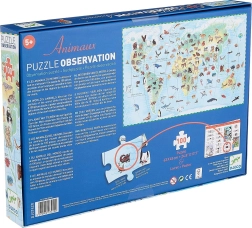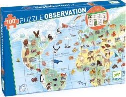 Otkrijte svijet uz dječju slagalicu DJECO Observation koja spaja radost slaganja s upoznavanjem prirode. Na velikoj slici djeca pronalaze životinje sa svih kontinenata, a zahvaljujući priloženoj brošuri proširuju svoje znanje. Slagalica od 100 dijelova nakon slaganja ima dimenzije cca 63 × 45 cm i potiče logičko razmišljanje, strpljenje i finu motoriku.