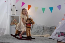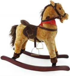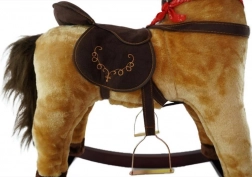 Ovaj smeđi ljuljački konjić izrađen je od kvalitetne, na dodir mekane plišane tkanine koja poziva na maženje i sigurnu igru. Realistična izrada s uzdom, sedlom i stremenima potiče dječju maštu i pretvara svaku sobu u mali ranč.