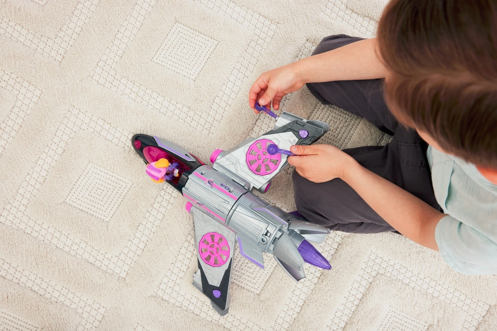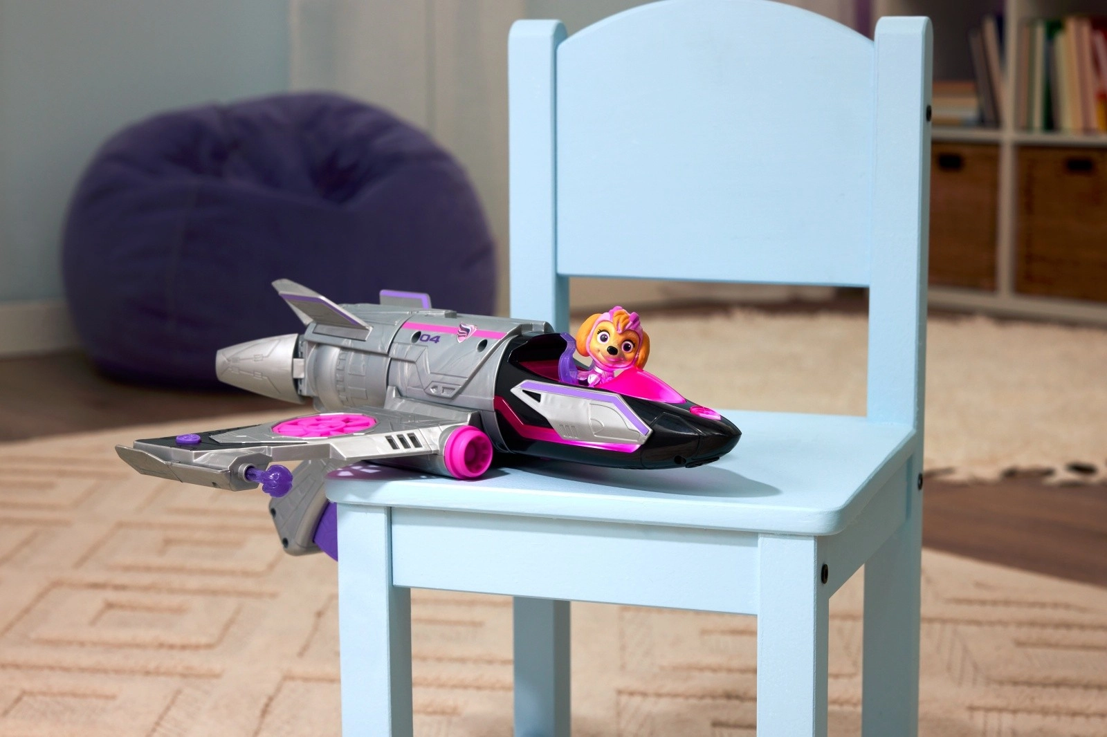 Doživite akciju kao na platnu s interaktivnim zrakoplovom Skye iz filma Psići u ophodnji: Veliki film. Nakon što smjestite figuricu u kokpit, osvjetljavaju se dijelovi zrakoplova i Skye, pokreću se glazba i zvučni efekti i djeca mogu odmah krenuti na misiju. Zahvaljujući ergonomskoj dršci zrakoplov se može naginjati gore, dolje i u strane te tako aktivirati dodatne zvučne reakcije.