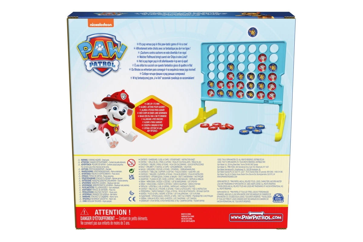 Upustite se u natjecanje štenaca iz PAW Patrol! Igra donosi živahnu i zaraznu zabavu za dva igrača – idealno za praznike, nakon škole i obiteljske igraće večeri. Dovoljno je postaviti stalak, izmjenjivati se u ubacivanju žetona i nadmudriti protivnika stvaranjem ravnog niza od četiri vlastita simbola.