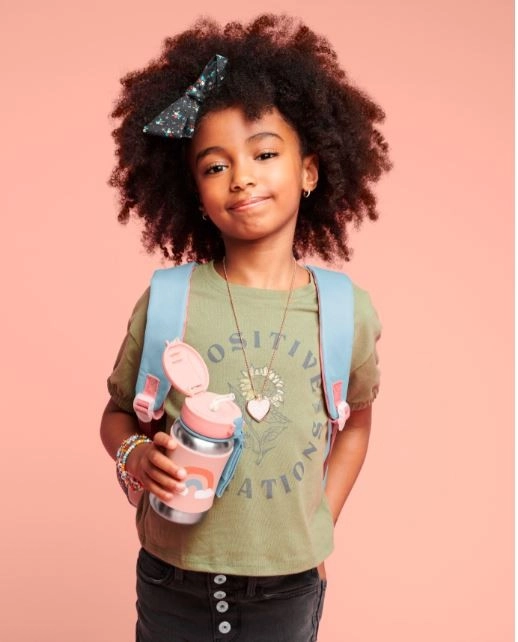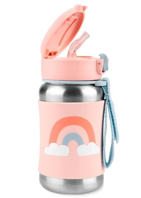 Boca za vodu od nehrđajućeg čelika s sjajnim uzorcima koji unose iskru malim osobnostima, pomaže održavati pića hladnima u pokretu. Klizni poklopac održava fleksibilnu slamku čistom, a protuklizna silikonska navlaka štiti male ruke od hladne površine.