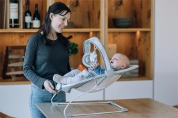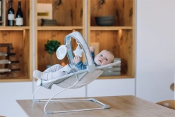 Promišljeni detalji poput odvojivog luka s igračkama za razvoj motorike i mašte, trotočkastog pojasa za sigurnost pri sjedenju i jednostavne održivosti zahvaljujući perivoj navlaci čine ležaljku praktičnim izborom za svaki dom.