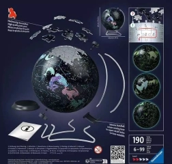 Otkrijte čaroliju svemira u bilo koje doba dana sa svjetlećim puzzle globusom zvjezdanog neba. Nakon slaganja od 180 preciznih dijelova pred vama se pojavljuju sazvježđa i horoskopski znakovi koji zahvaljujući fosforescentnom materijalu sjaje u mraku. Zahvaljujući tehnologiji EasyClick dijelovi savršeno pristaju i drže bez lijepljenja. Globus ujedno služi kao nježan dekorativni svjetlosni element za dječju sobu ili radni prostor.