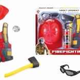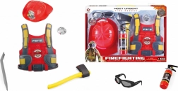 Postanite heroj uz vatrogasni set za djecu, koji sadrži sve potrebno za maštovitu igru vatrogasca: prsluk, kacigu, sjekiru, naočale, aparat za gašenje, pajser i značku.