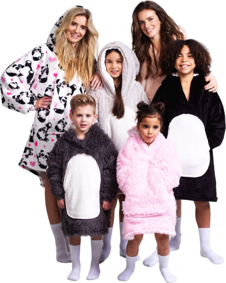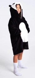 Velika duksa s kapuljačom s motivom životinje koja služi kao topla, mekana i pahuljasta deka koja grije u svakoj prilici, a djecu dodatno razveseljava svojim razigranim i privlačnim dizajnom. Unutrašnjost dukse izrađena je od toplog, pahuljastog sherpa flisa, a lice od super mekog i nježnog materijala koji se koristi za najmekše deke. Sve dukse iz ove linije imaju i veliku prednju džep-kenguricu u kojoj se lijepo mogu ugrijati hladne ruke. Svako će se dijete u njoj sigurno osjećati udobno, bilo kod kuće na kauču uz televiziju ili odmor, ili pak pri igri, jer ih neće nimalo ograničavati u kretanju. Vrlo je praktična i pri kampiranju ili drugim outdoor aktivnostima, kao i pri sjedenju vani u vrtu po hladnijem vremenu. Ova duksa i deka u jednom prekrasan je i praktičan poklon. U ponudi Cozy Noxxiez često možete pronaći u istom dizajnu i topli plišani jastuk 3 u 1, golemi topli papuča, ili toplu deku s kapuljačom sa životinjskim motivom i džepovima u obliku šapica, pa možete imati cijeli set za grijanje savršeno usklađen.