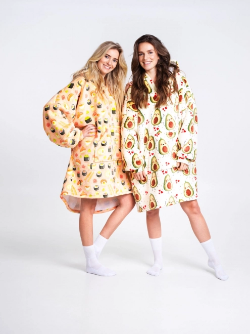 Cozy Noxxiez je mikinasta deka s kapuljačom koja grije u svakoj prilici. Vanjska strana od nježnog flanela ugodna je na dodir, dok unutarnji sherpa flis pouzdano zadržava toplinu. Oversize kroj osigurava slobodu kretanja i udobnost za tinejdžere i odrasle.