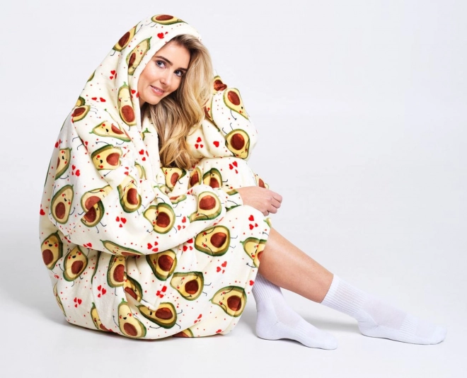 Uživajte u maksimalnoj udobnosti s dekicom s kapuljačom Cozy Noxxiez Avokado – kombinacijom hoodice i deke u jednom. Unutrašnjost čini topli sherpa flis, a vanjski dio super mekani flanel. Zahvaljujući prostranoj kapuljači i velikom prednjem džepu ruke i glava ostat će u toplini. Idealno za odmor na kauču, rad na računalu, čitanje i boravak na otvorenom u hladnijem vremenu.