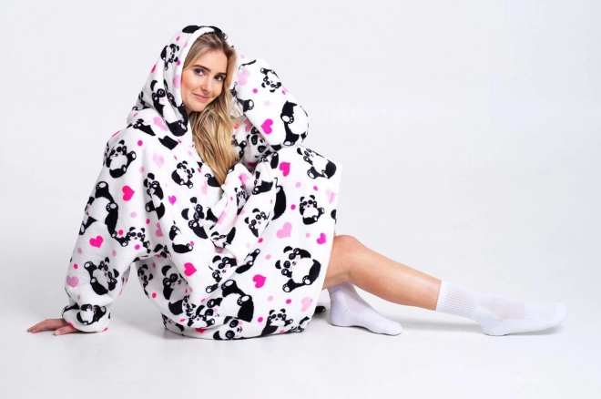 Ova hoodica i deka u jednom dizajnirana je za svakodnevnu ugodu. Oversize kroj ne ograničava pokret, dok mekani materijali ugodno griju. Stilski motiv pande daje razigran izgled i čini je sjajnim poklonom za žene i muškarce.