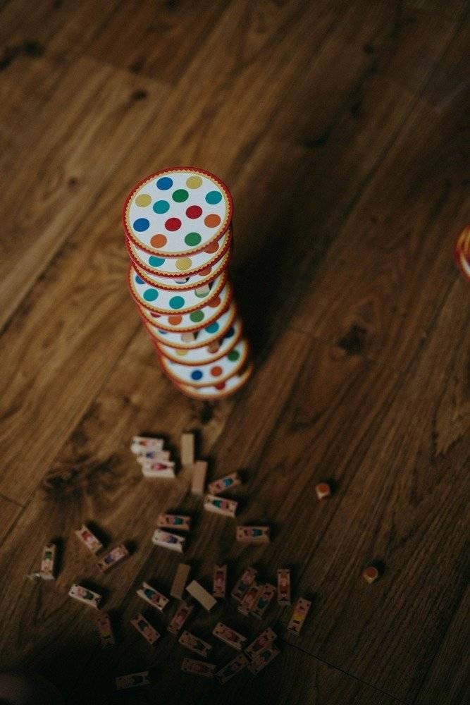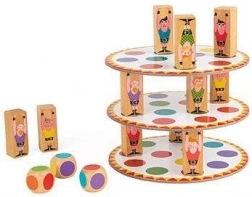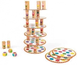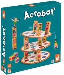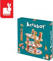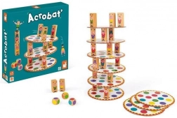 Kome će se kula srušiti kao prva? Zabavna društvena igra za djecu za usavršavanje vještina. Bacajte kocke i strateški postavljajte svoje akrobate kako biste izgradili što višu kulu. Osoba kojoj se kula prva sruši – gubi! Igra razvija: - spretnost i motoriku - strateško razmišljanje - koncentraciju. Igra sadrži 20 kartonskih podloga (10,5 x 10,5 cm), 57 drvenih žetona i 3 kocke. Prikladno za djecu od 5 godina.