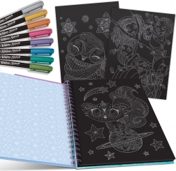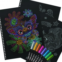 Crni listovi s detaljnim obrisima životinja i fantastičnih motiva olakšavaju bojanje bez potrebe za skiciranjem. Idealno za brz početak i opuštanje.