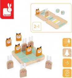 Otkrijte dvije neodoljive strateške igre u jednom setu od JANOD-a. Ovaj set je idealan za dva igrača i pruža zabavu za djecu od 5 godina i starije. Sastavljanje igraće ploče nudi na jednoj strani polje za križić-kružić, a nakon rasklapanja se pretvara u trkaću stazu. Figure lisica i zečeva izrađene su od drva i imaju filcane uši, što igri dodaje originalnost.