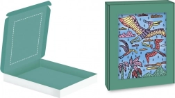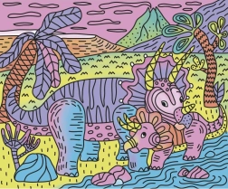 Ovaj jedinstveni set s tematikom dinosaurusa nudi kreativno iskustvo za male umjetnike. S pomoću posebnog kista koji ima spremnik za vodu, djeca mogu postupno slikati i pratiti kako prekrasne boje oživljavaju na papiru. Svaka slika je detaljno prikazana i djeca uče kako spriječiti miješanje boja. Nakon završetka, slike se mogu uokviriti u priloženu kutiju, što dodaje dječjim radovima dozu originalnosti.