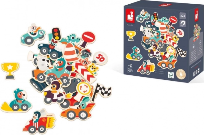 Ovaj šareni set sadrži raznovrsne tipove vozila, uključujući automobile, motor, i neophodan kamion. Svaki od magneta je pažljivo izrađen i ukrašen kako bi potaknuo dječju maštu i ponudio mnogo mogućnosti za igru. Dodajte tome i životinjice trkače spremne za natjecanje i imate savršeno sredstvo za zajedničku zabavu.